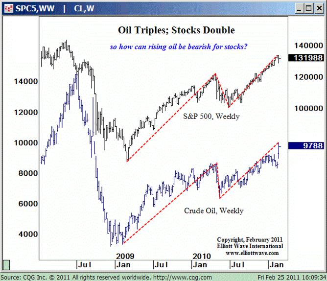 But the facts told a different story: Since the first quarter of 2009, oil had tripled in price while stocks had doubled!