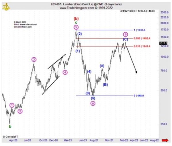 As you know, there had been a post-pandemic surge in housing demand at the time, which many observers believed would support higher lumber prices. But as Elliott Wave International has pointed out many times, investors cannot count on “fundamentals” as a basis for forecasting financial markets. Instead, we closely watch Elliott wave price patterns.