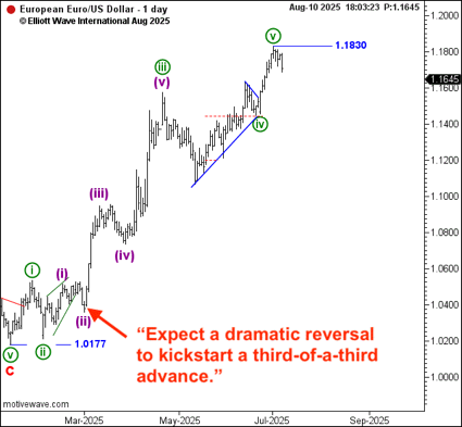 EWI Founder Bob Prechter calls third waves “wonders to behold” since they are often the longest and most powerful portion of an impulse pattern. Of the five waves in an impulse, the third wave is the one you want to catch.
