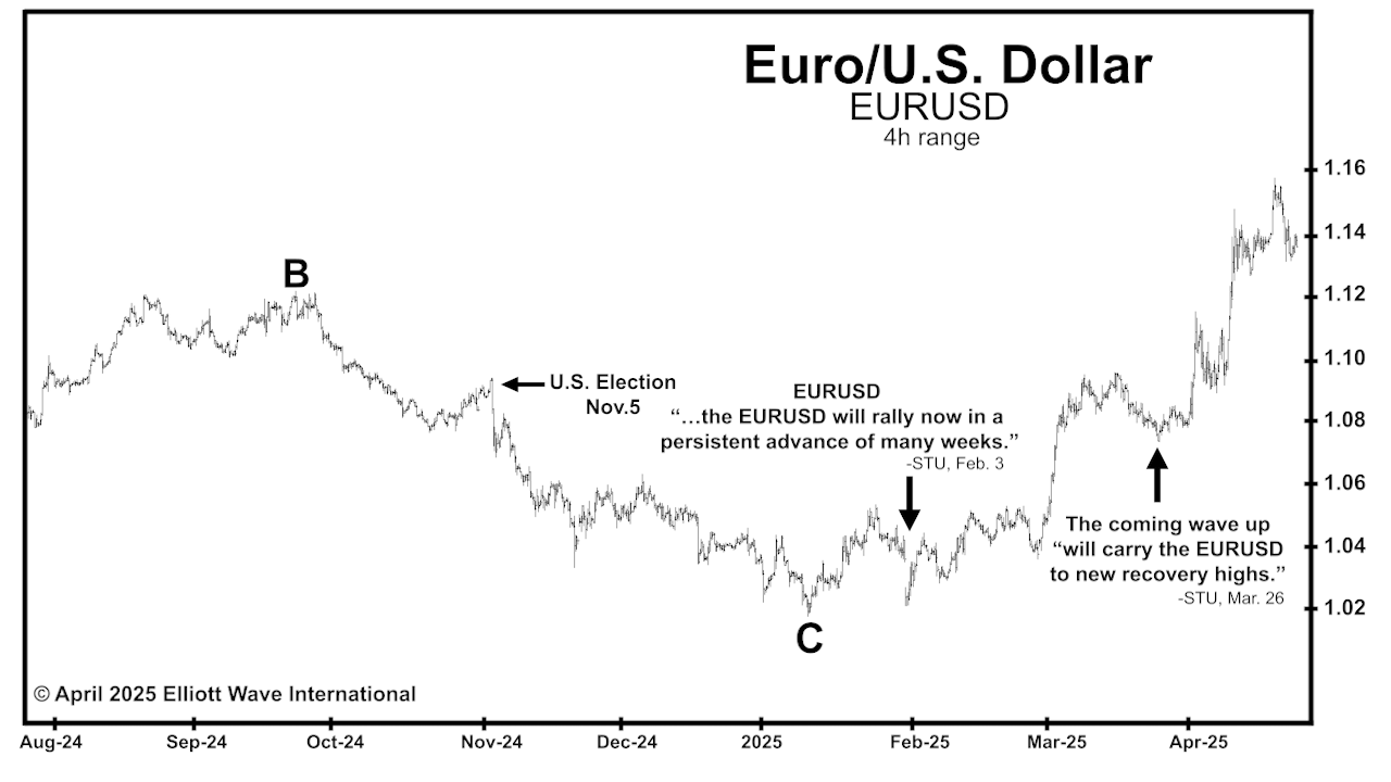 Fast-forward to January: on the 3rd, GMP anticipated a major reversal in EURUSD. Ten days later, on January 13, STU called for “a multi-month rally” — which began the very same day.