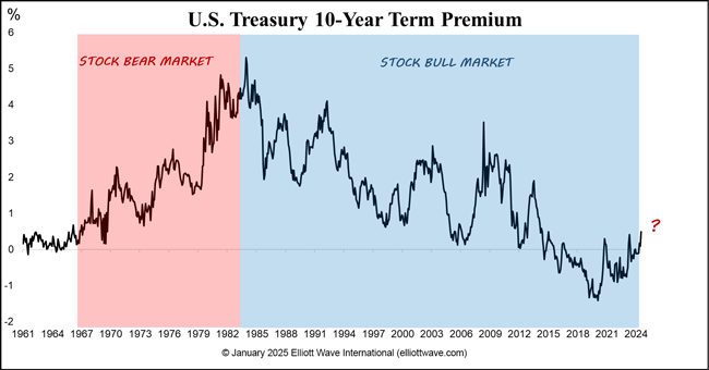 Alarm bells ring. Interest on the rapidly rising national debt of more than $36 trillion now exceeds the defense budget! And, according to the U.S. Government Accountability Office, 2024 marked the fifth year in a row that the U.S. saw a budget deficit north of $1 trillion. Investors are increasingly worried about the fiscal health of the U.S., as our February Global Rates & Money Flows explains: