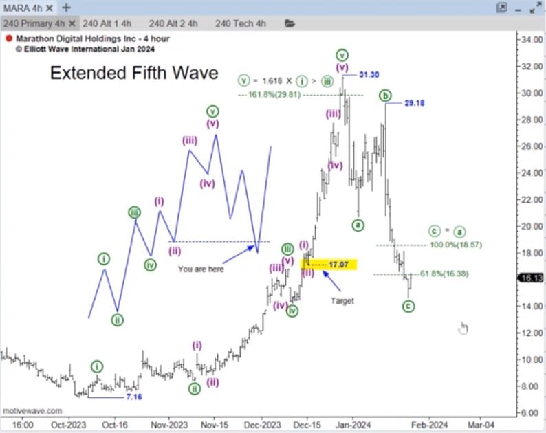 The writing for a broadscale bullish set-up first appeared on our wall on January 23. There, in our Trader’s Classroom lesson,senior crypto analyst Jason Soni recorded a special segment on what to expect following impulse waves. The common retracement for a five-wave impulse is the area of the previous fourth wave of one lesser degree.  However, when that impulse contains an extended fifth or third wave, the retracement target is different. From Jason: