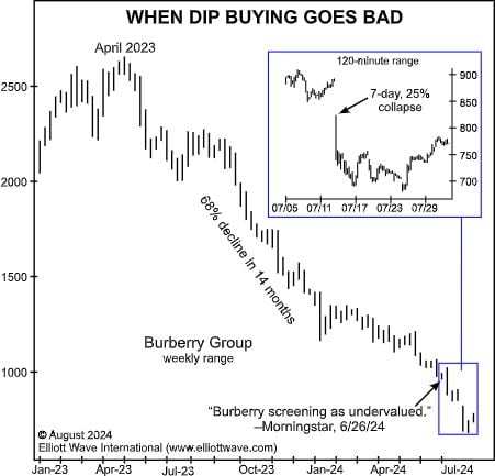 Despite Burberry’s 14-month, 68% swoon since April 2023, the stock crashed another 25% over just seven trading days in July.