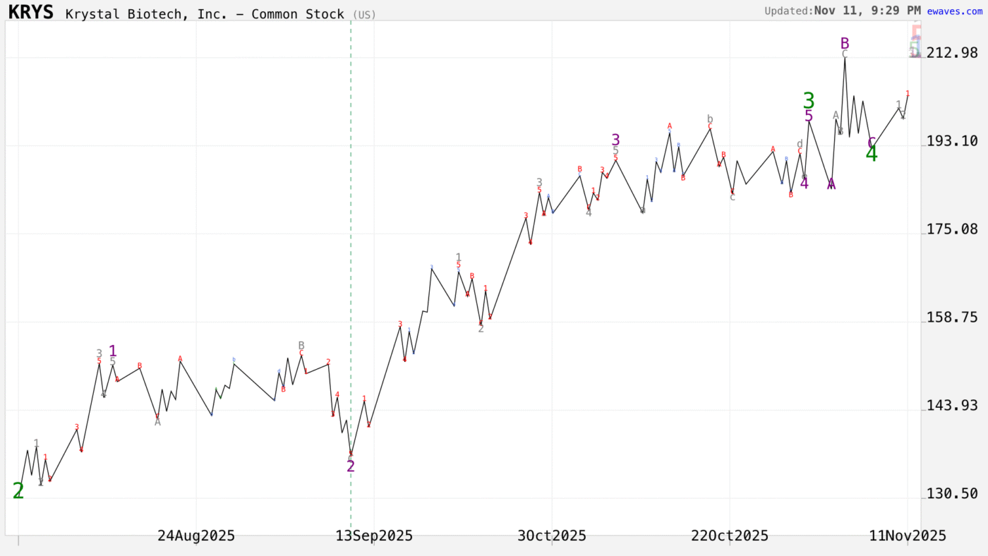 On November 11, the EWAVES Wave Finder flagged Krystal Biotech (KRYS) in its “Turbo Fifth” scan.