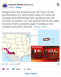 - Maps Show “Hot, Hot Heat” Headed to the Northeast U.S. that could Break Dozens of Records, Put Millions at Risk” — June 17, CBS News