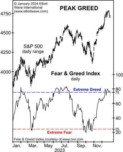 Let’s now consider the opposing mindsets of fear and greed and see what they reveal at this juncture in the S&P 500’s price pattern.