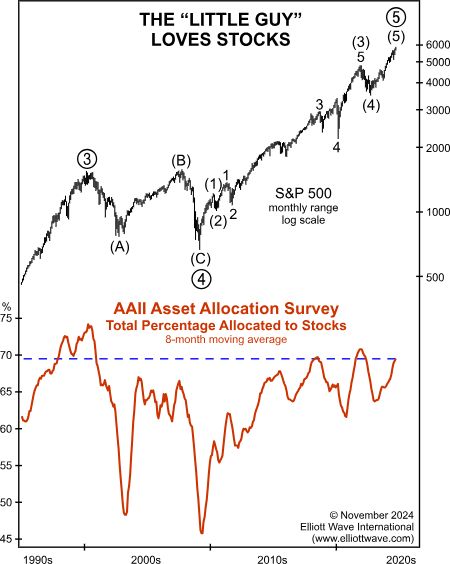 The U.S. stock market is worth twice annual U.S. gross domestic product. That means it’s the most expensive stock market ever. Are Main Street investors worried? Hardly. Our November Elliott Wave Financial Forecast reveals their behavior: