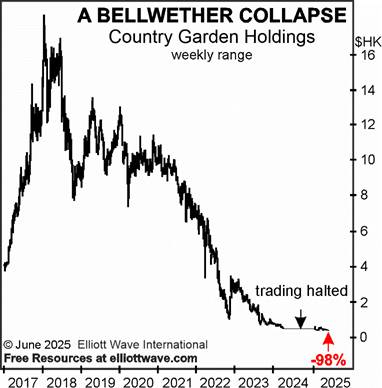 Imagine the common stocks of residential real estate developers D.R. Horton or Lennar Corp dropping 98%. What would that imply for US real estate? Back in 2022, our Global Market Perspective warned that China real estate developer Country Garden Holdings “is becoming a bellwether of contagion risk.” Here’s a June 2025 GMP update:
