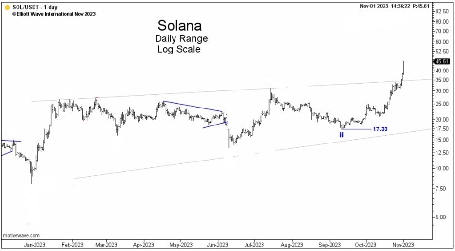And, this next chart captures Solana’s upsurge into the November 2 high, marking a 170% gain from its September 11 low.