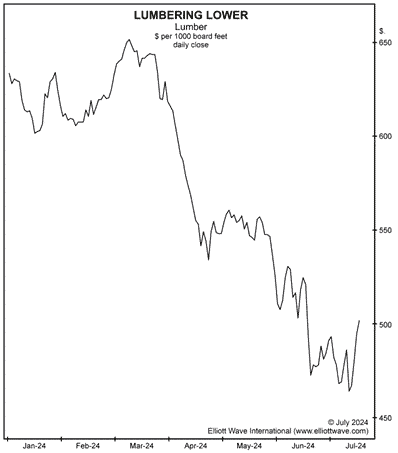 Everyone’s talking about what’s next for the U.S. economy. Lumber’s recent price trend is flashing a warning signal of a turn in the tide ahead. Here’s an excerpt from the July 19, 2024 Elliott Wave Theorist: